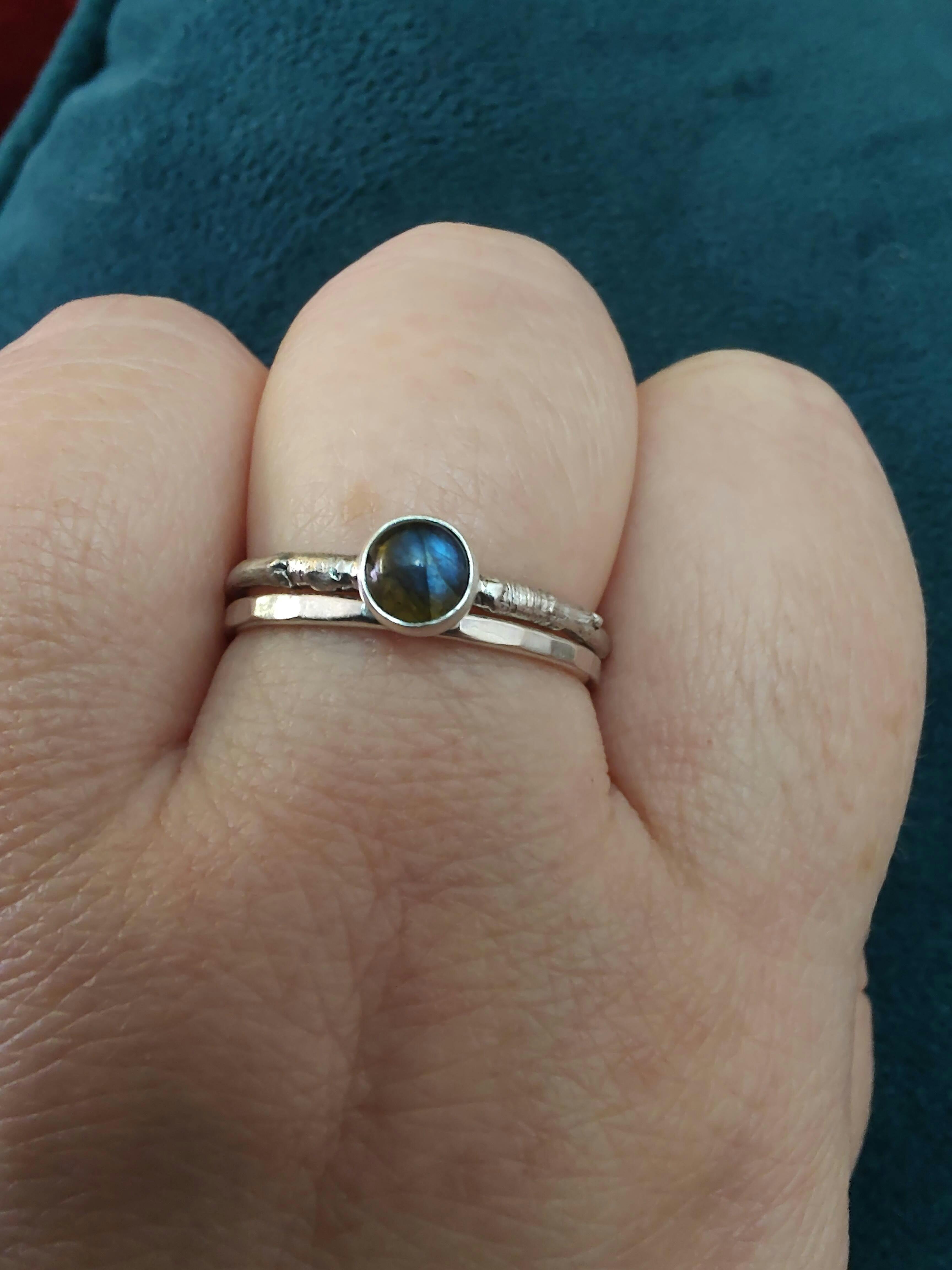 Try stacking the Labradorite Woodland Stacking Ring with the woodland ring or wearing it together with others from the woodland collection.
